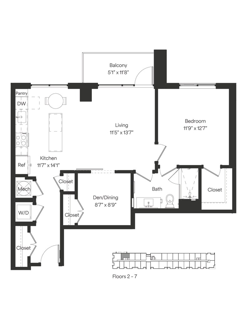 1 Bed, 1 Bath, 742 sq ftAvailable NowLargest 1 BedroomThis is the largest 1 Bedroom at this PropertyModel Gallery