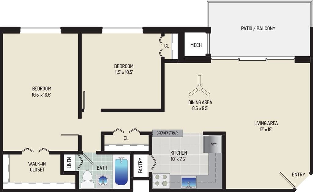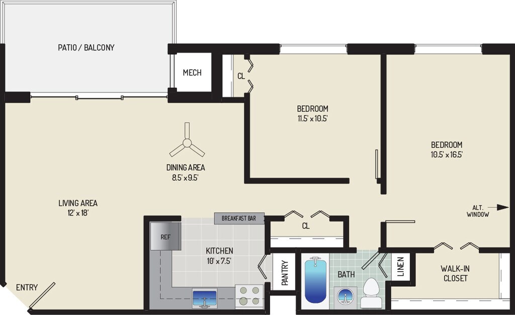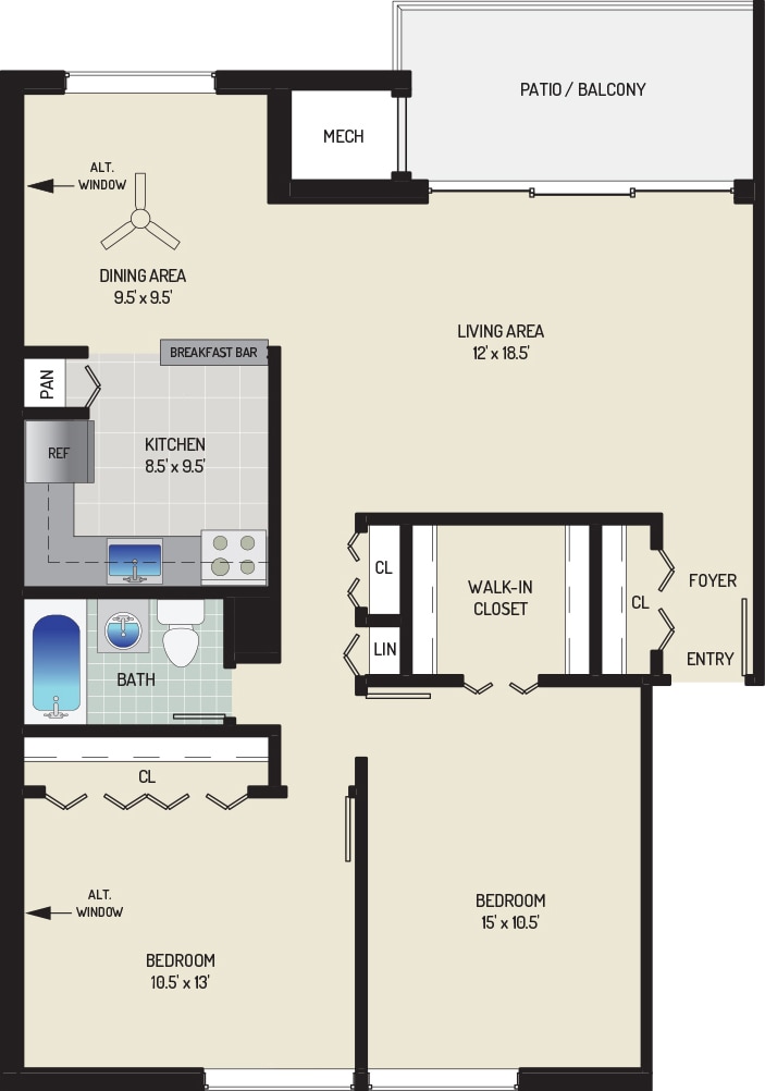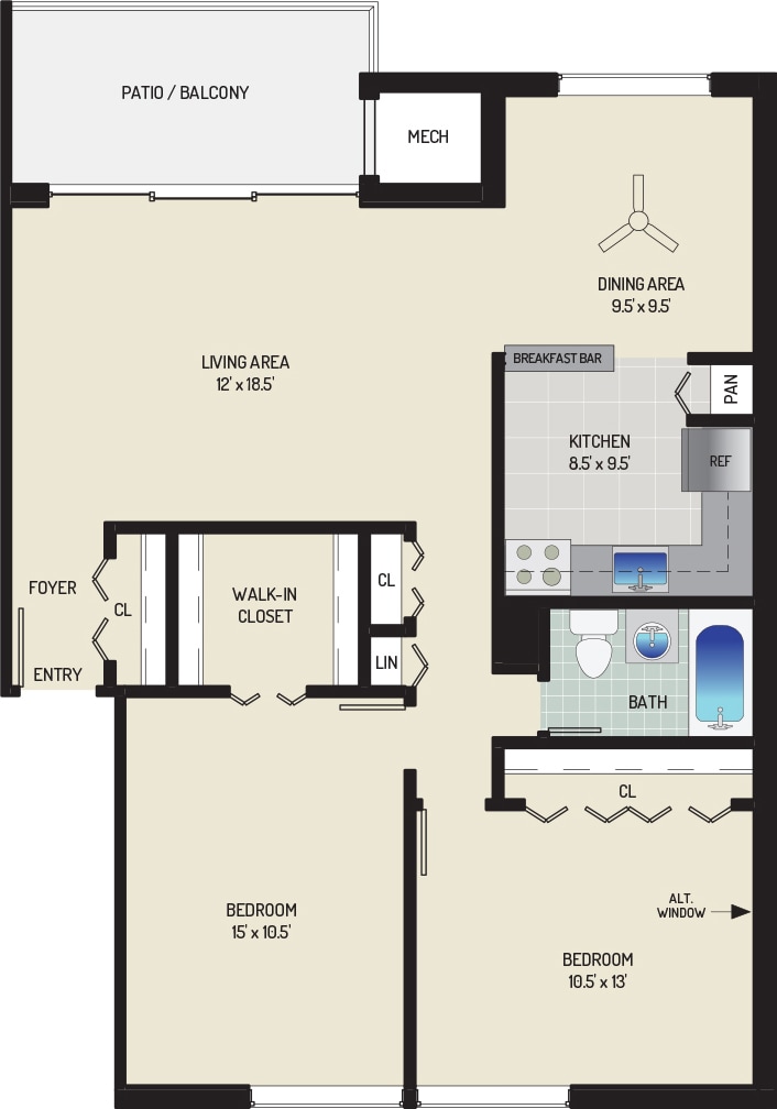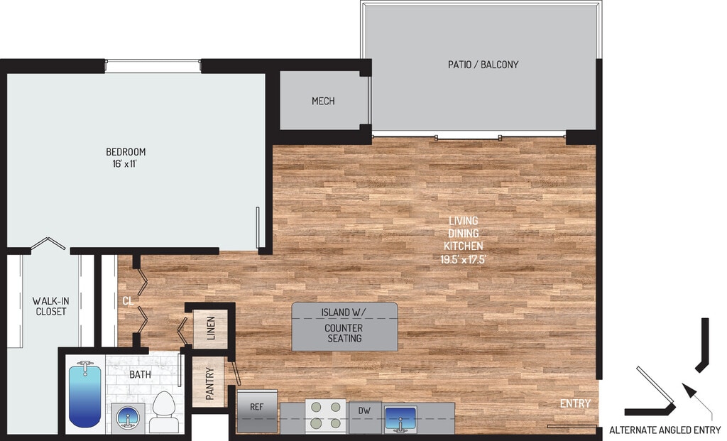 1 Bedroom + 1 Bath - Floorplan 2 ![]()