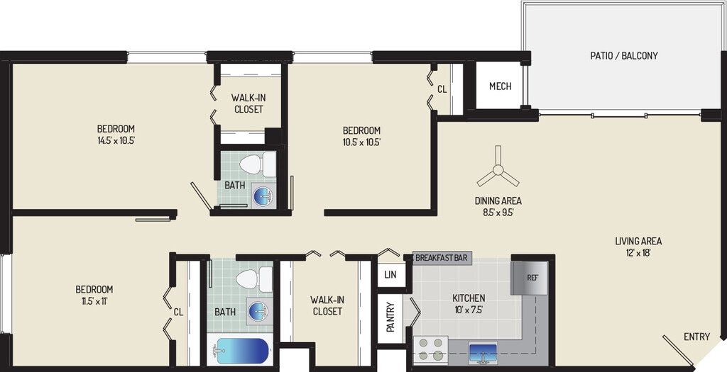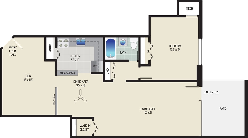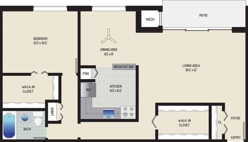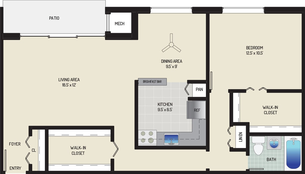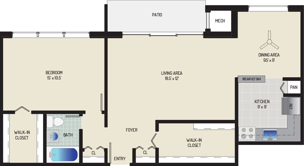 1 Bedroom + 1 Bath - Floorplan 1 ![]()