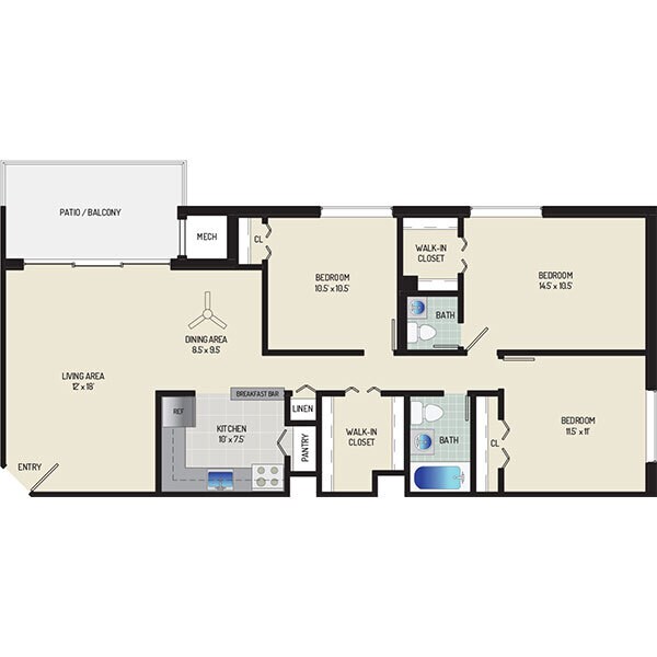 1 Bedroom + 1 Bath - Floorplan 3 ![]()