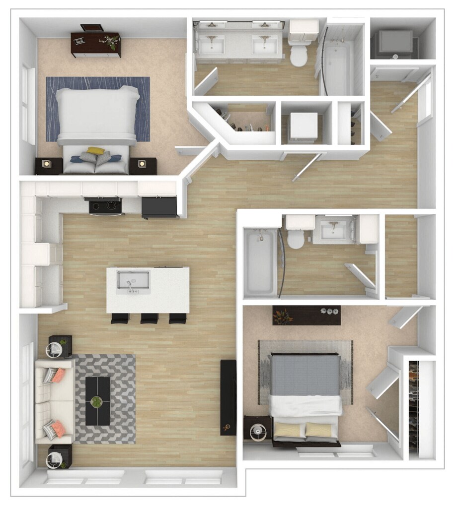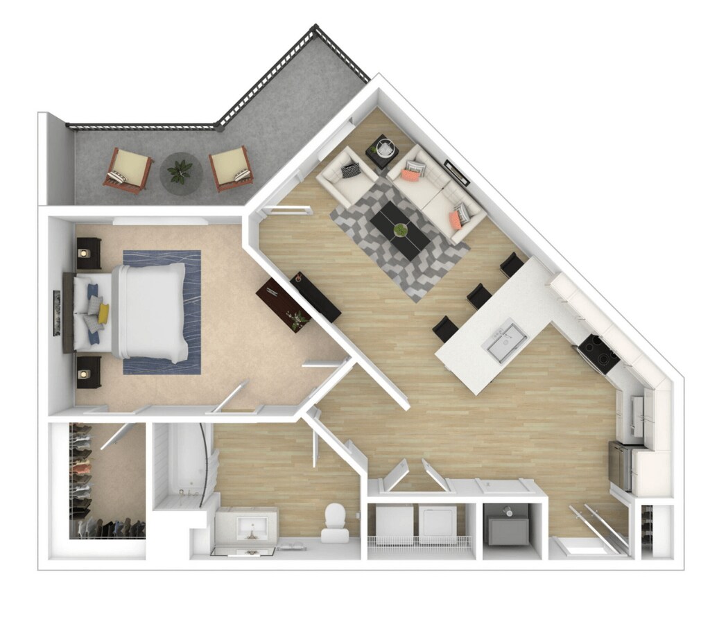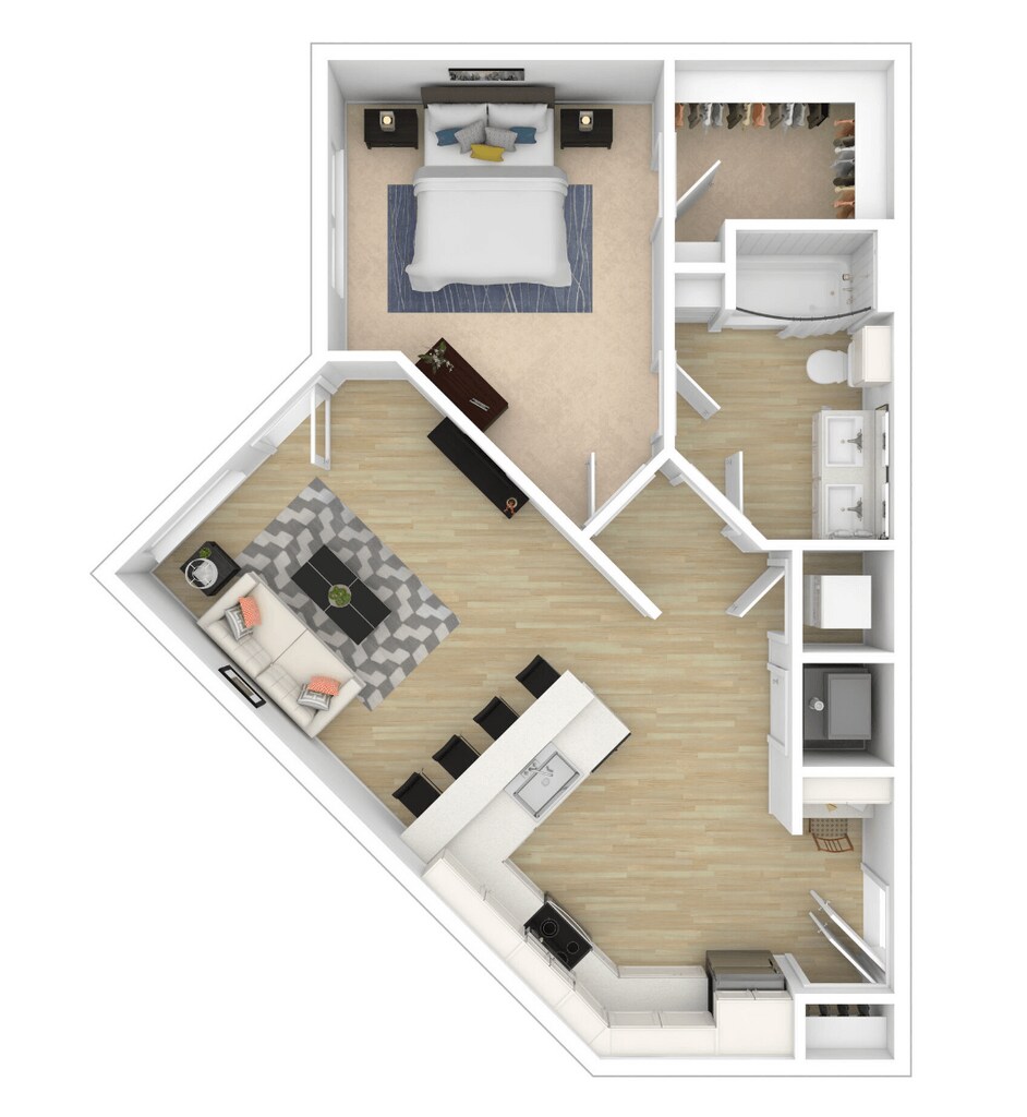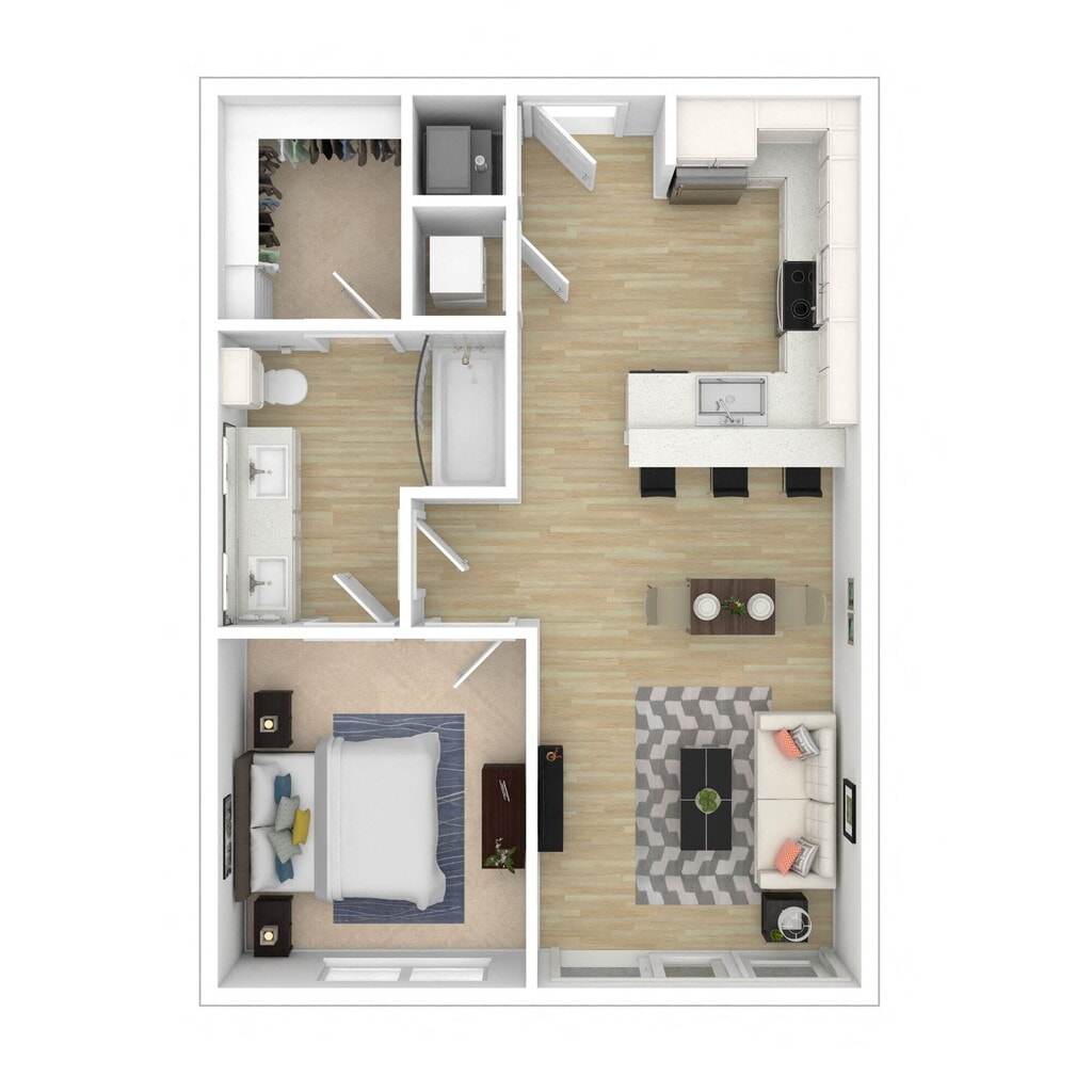 1 Bed, 1 Bath, 744 sq ftModel Gallery
