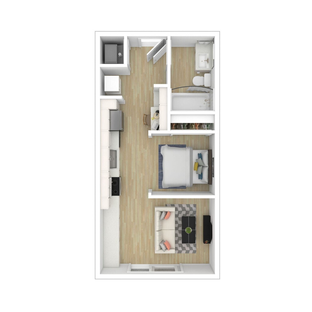 Studio, 1 Bath, 555 sq ftAvailable NowModel Gallery