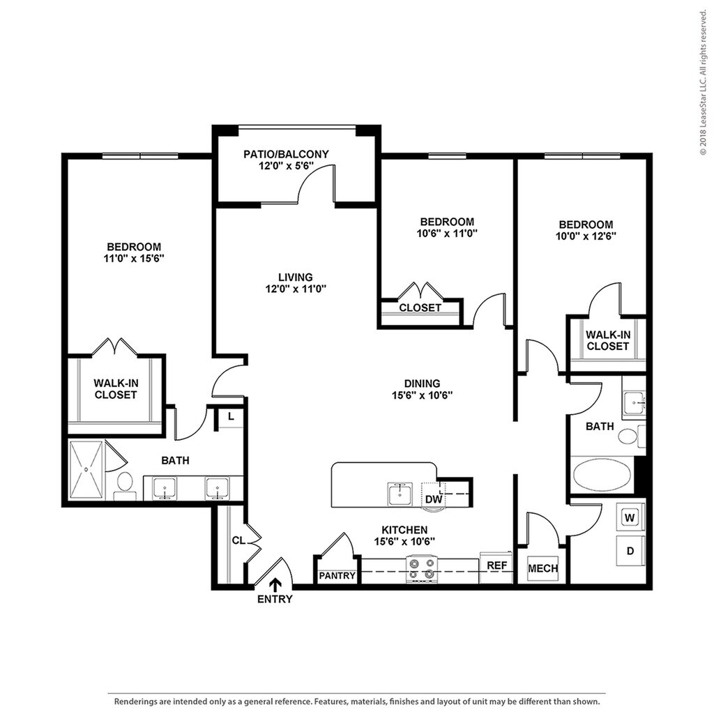 Apartment Model: B1From $1,7352 Bedroom, 2 Bath, 1183 sq ftAvailable Now![]()
