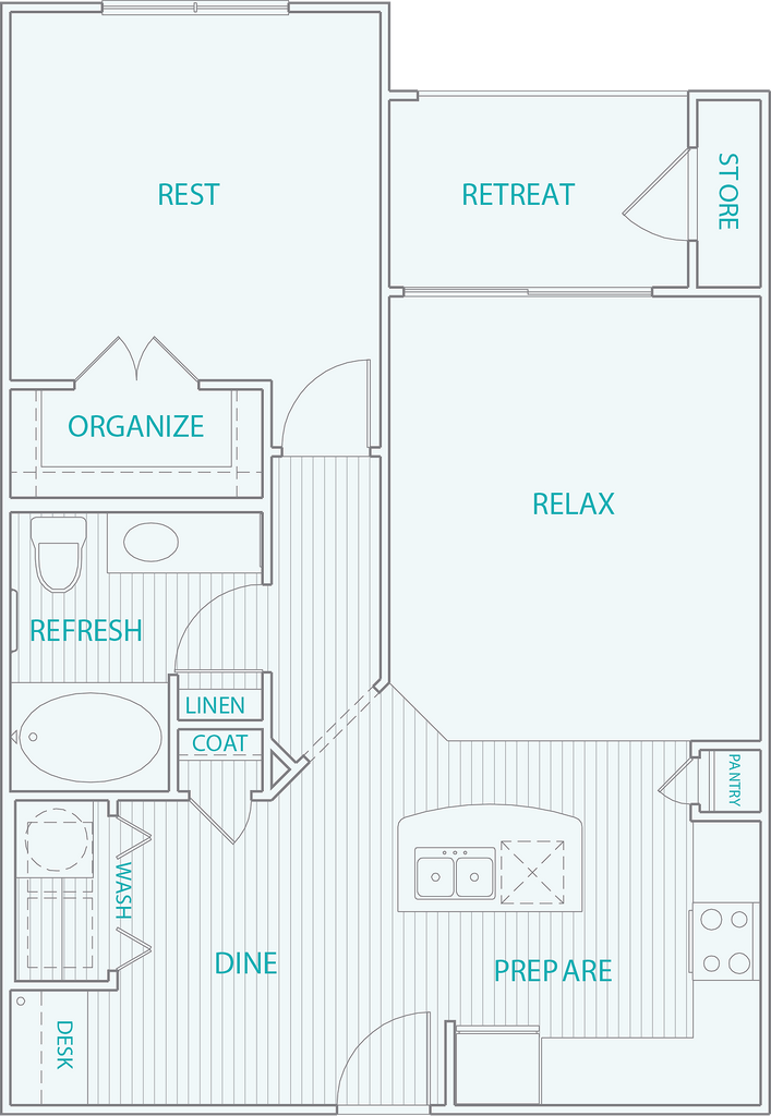 1 Bed, 1 Bath, 625 sq ftAvailable NowModel Gallery