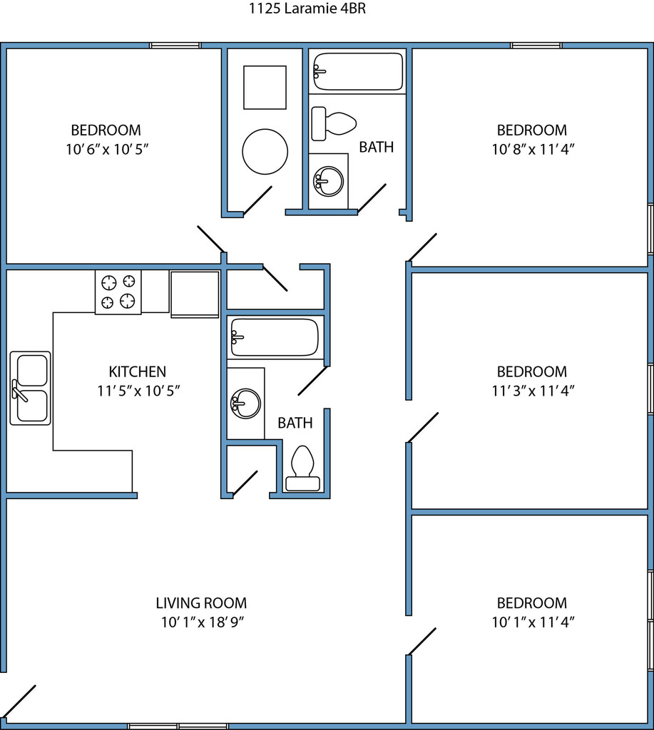 4 Bed 2 Bath - Floorplan 1 4 bedroom 4 bathroom