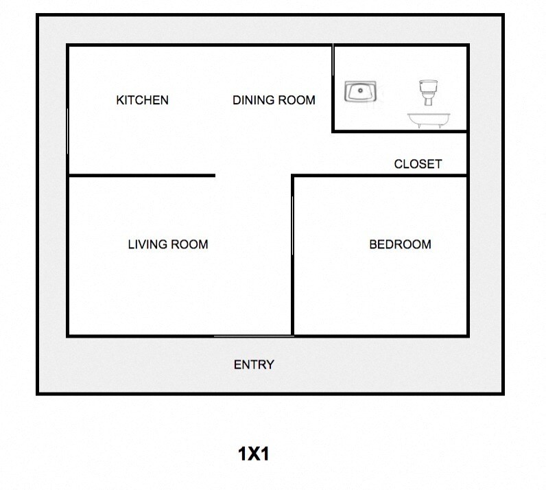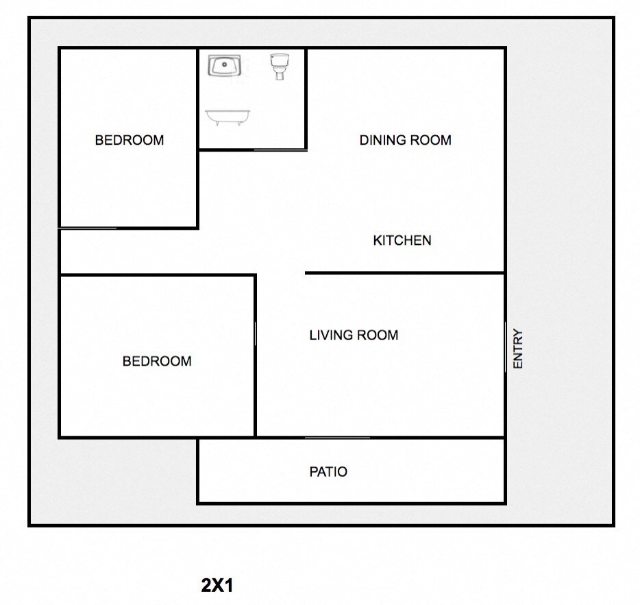 1 Bed 1 Bath - Floorplan 1 2 Bedrooms