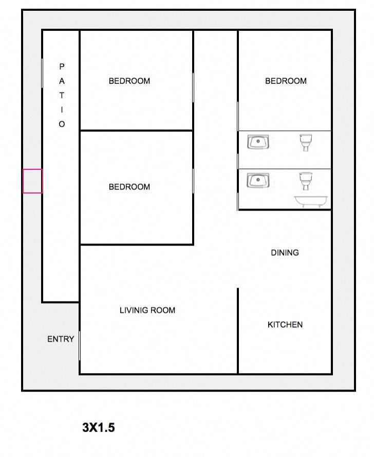 3 Beds, 1.5 Baths, 1050 sq ftModel Gallery
