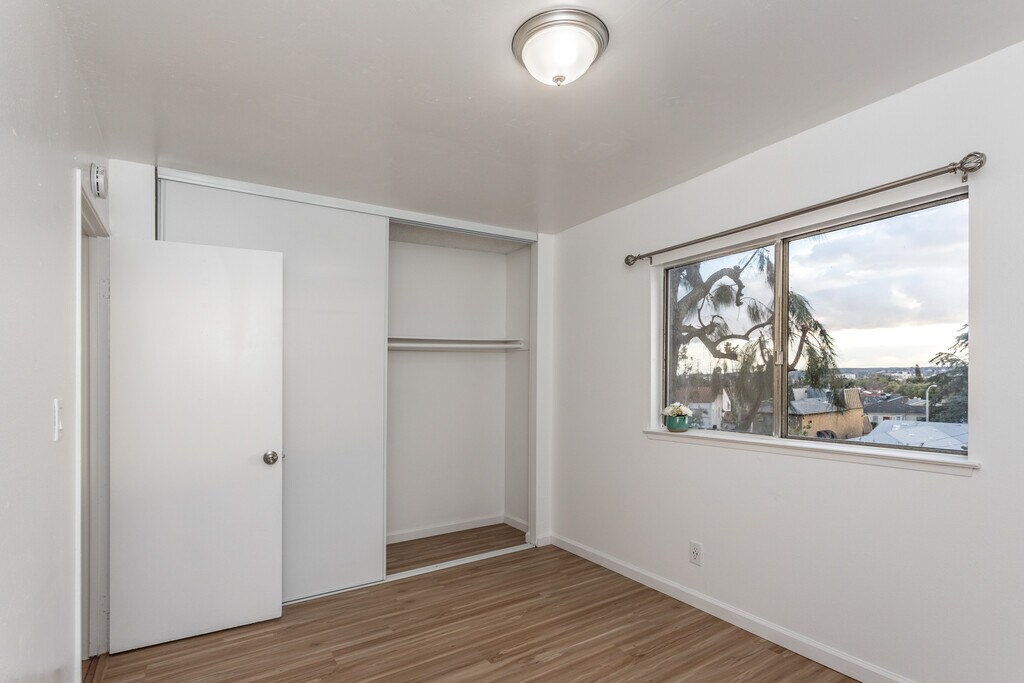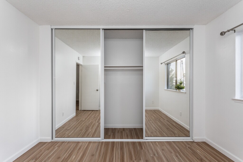 new laminate floor, new kitchen appliances, on-site laundry, gated garage parking, wall heater controlled by thermostat, large bedroom closet, spacious bathroom vanity