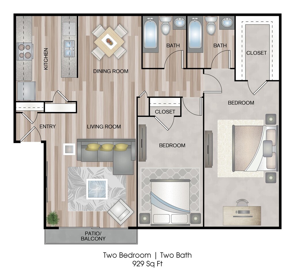 2 Beds, 2 Baths, 929 sq ftAvailable NowModel Gallery