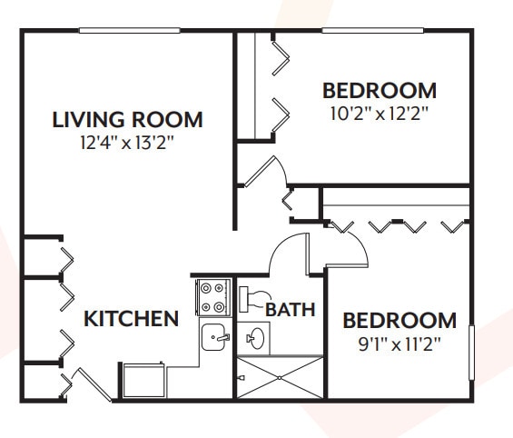 2 Beds, 1 Bath, 672 sq ftAvailable NowModel Gallery