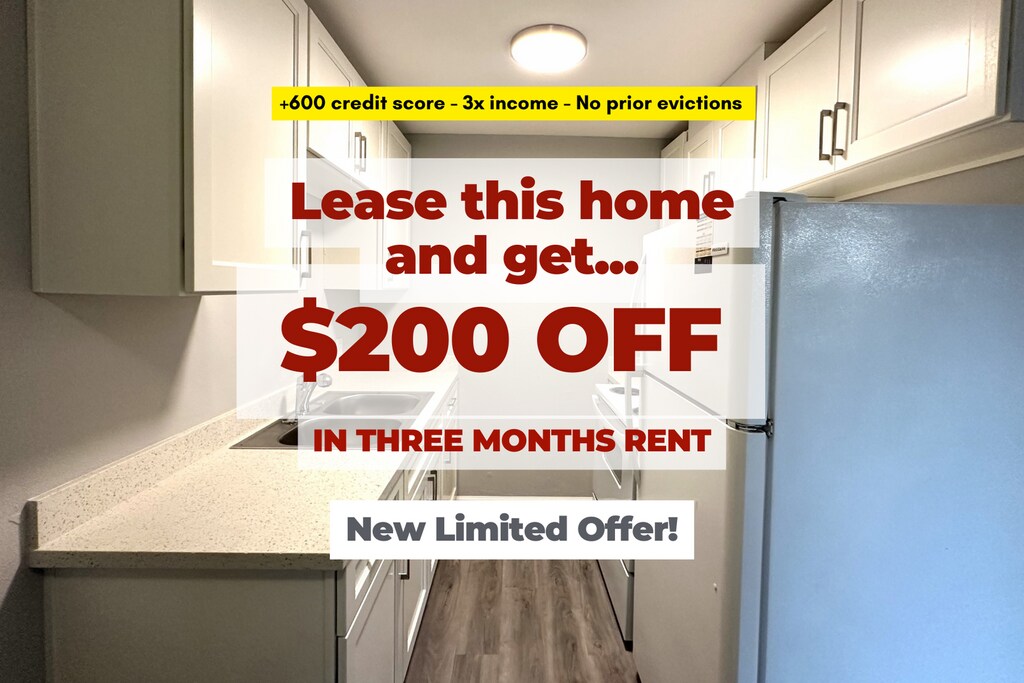 | Apply before December and get $200-OFF X 3 MONTHS! | Leasing 2-bedroom & 1-bath apartment in quiet PET FRIENDLY community- with easy-to-maintain vinyl plank floors, carpet in bedrooms, new appliances, upgraded bathroom w/tub and shower combo and ceiling fans. Schedule a tour today. | SATURDAY SHOWINGS AVAILABLE - PHONE HOURS SATURDAY (9 am - 4:30 pm) | RENTAL REQUIREMENTS: - Income = 3xRent - Credit = 600+ - No current delinquencies with previous landlords or Utility Companies. - No prior evictions - All residents must carry Renter’s Insurance with min liability of $100k Total move-in cost = first month’s rent + SD (security deposit) *Resident pays utilities. *Application fee = $40 (non-refundable) Thank you, we look forward to meeting you. [Photos shown may or may not be the exact unit–but are of similar floor-plan. Please verify with our leasing agent which apartment and features are available. Apartments move quickly. Thank you!]