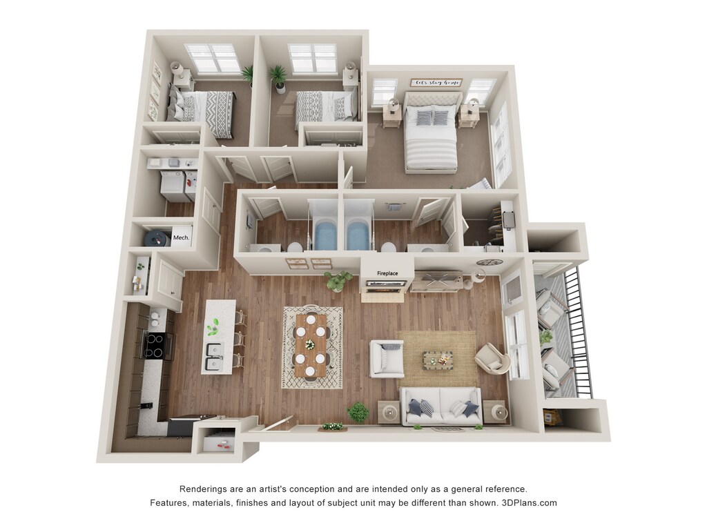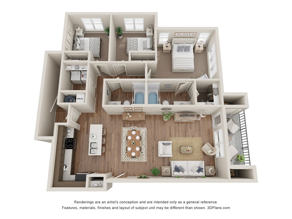 3 Beds, 2 Baths, 1366 sq ftLargest 3 BedroomThis is the largest 3 Bedroom at this PropertyModel Gallery