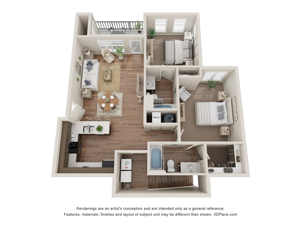 2 Beds, 2 Baths, 1169 sq ftLargest 2 BedroomThis is the largest 2 Bedroom at this PropertyModel Gallery