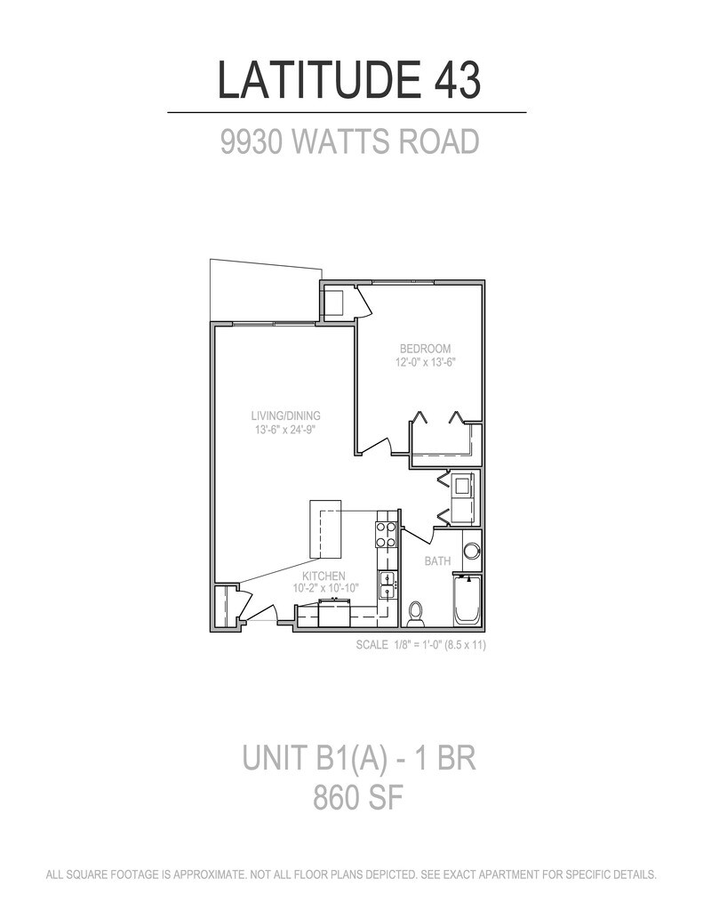 B1.1A - Floorplan 1 Apartment Unit: 9910_213Apartment Model: B1.1A$1,5251 Bedroom, 1 Bath, 859 sq ftAvailable December 1, 2025Floorplan B1