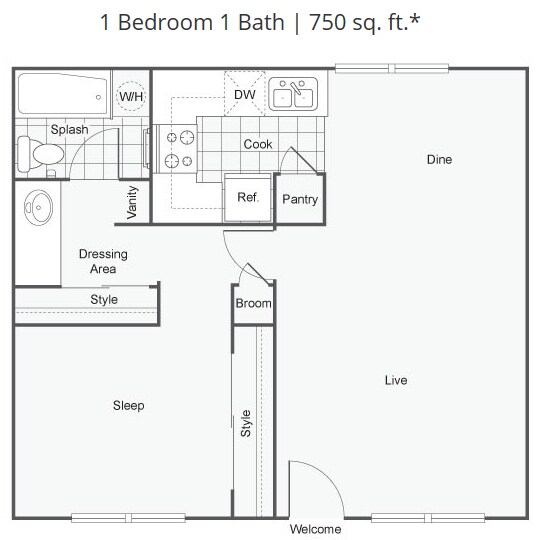1 Bed, 1 Bath, 750 sq ftAvailable NowModel Gallery