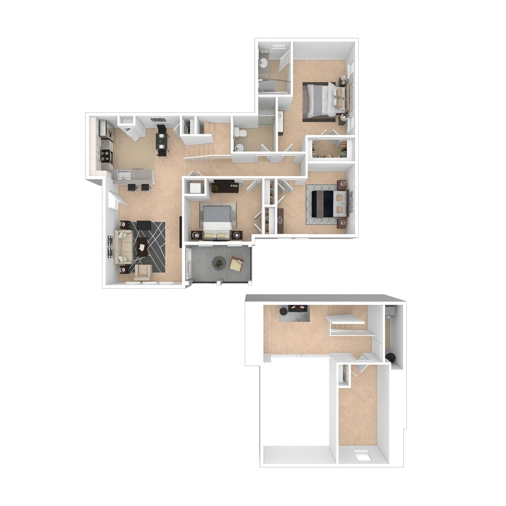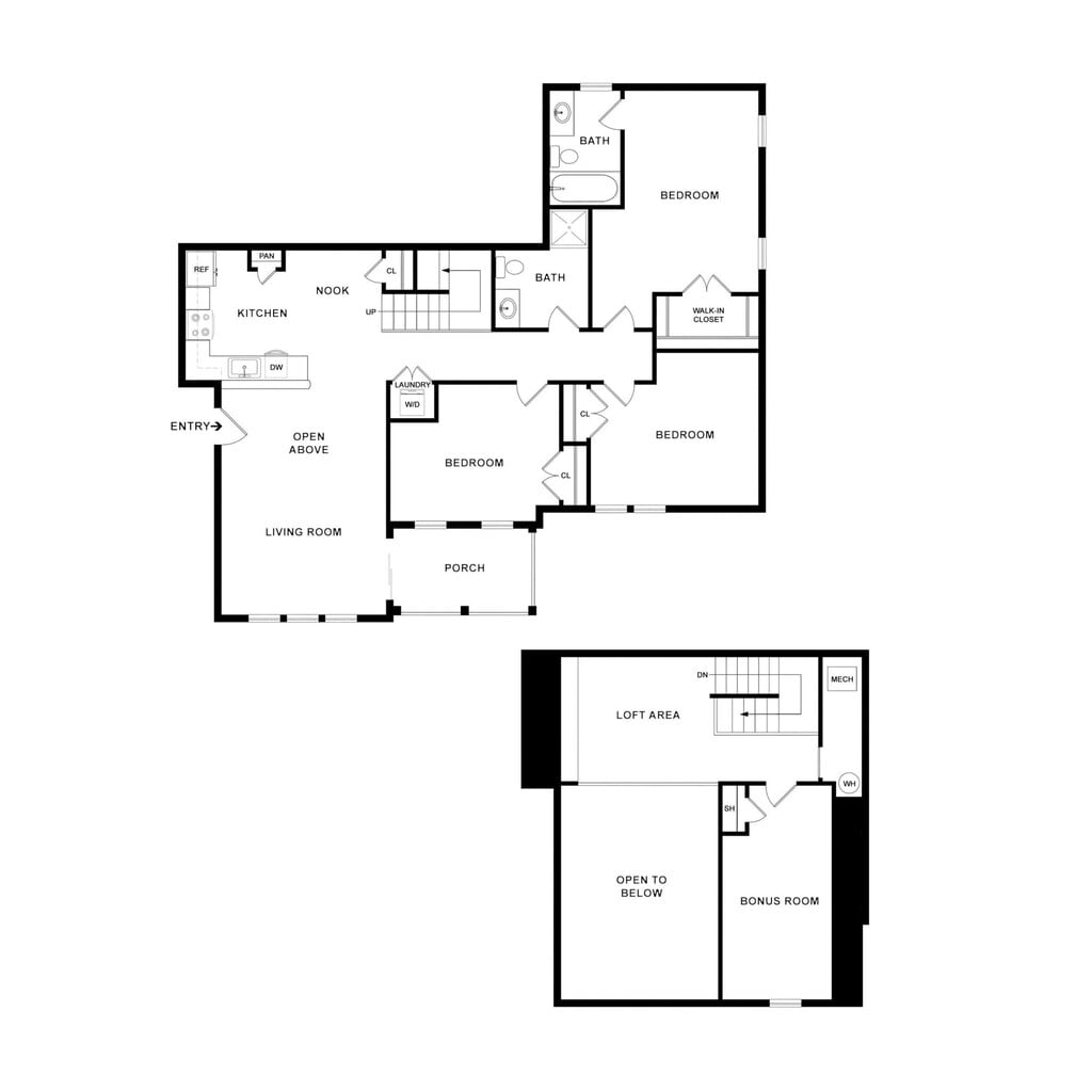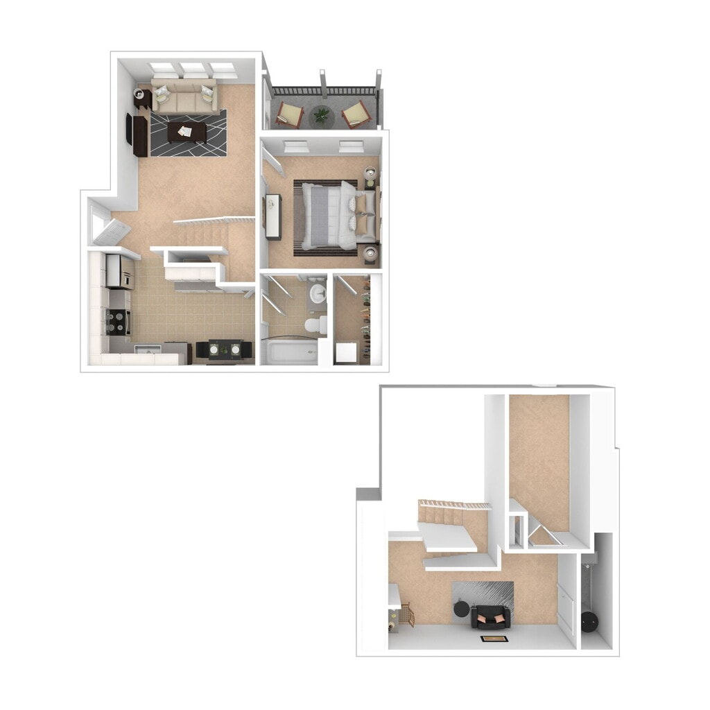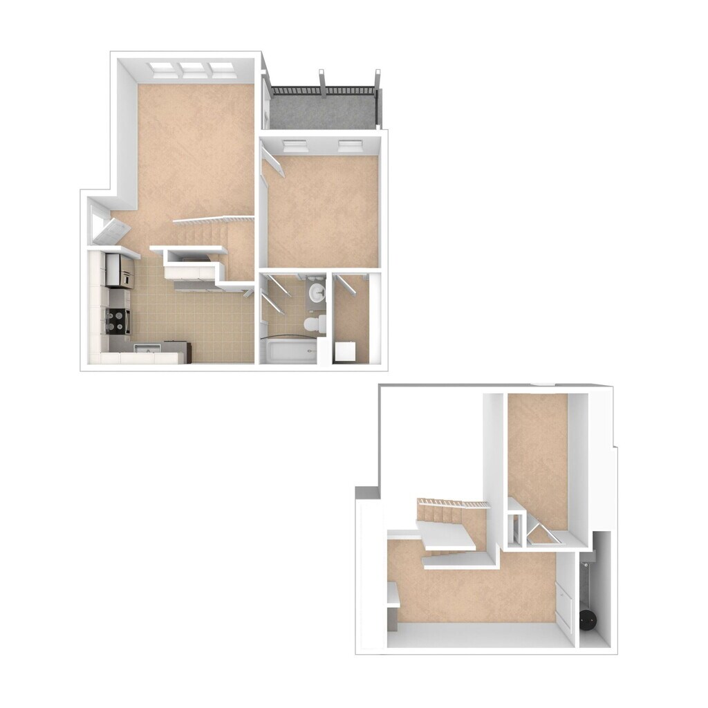 1X1 Loft - Floorplan 3 2 Bedrooms