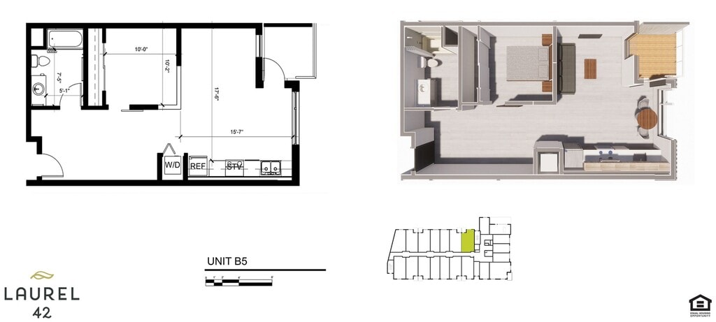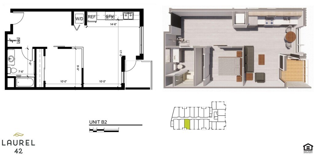 Laurel 42 offers Studio to 2 Bedroom apartments starting from $1,251 and having 407–895 sq ft. Here is the current pricing and availability: