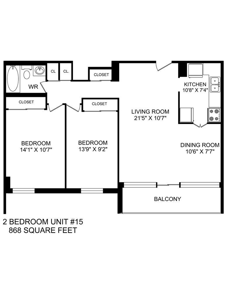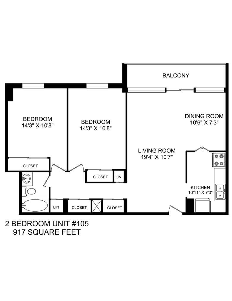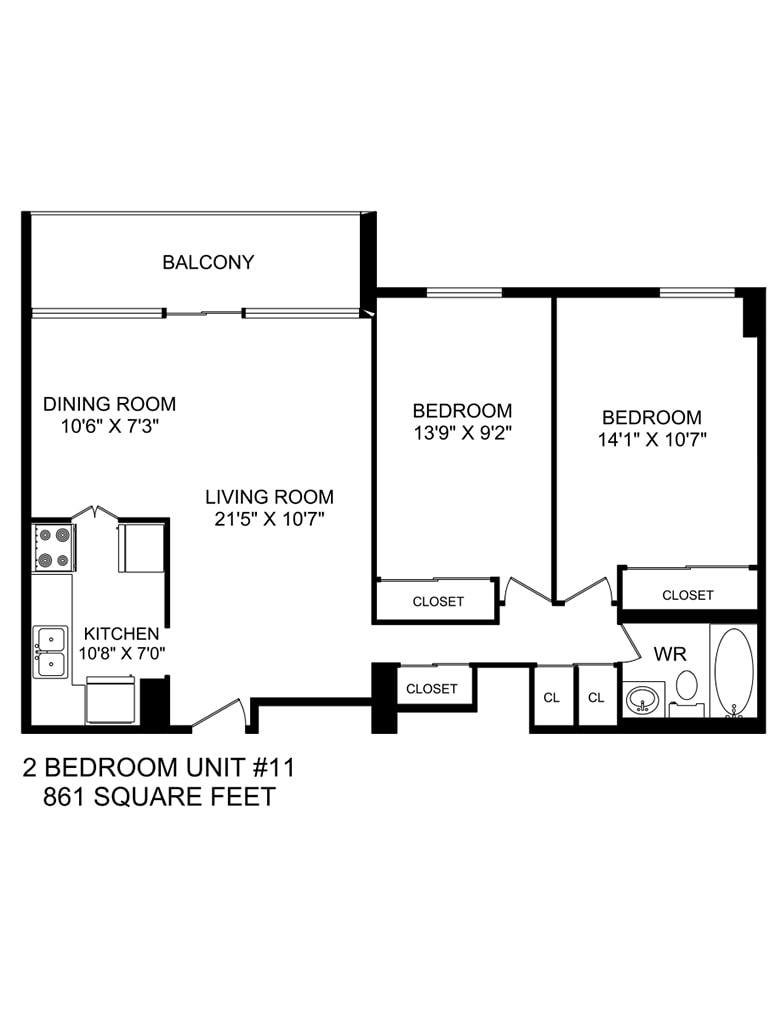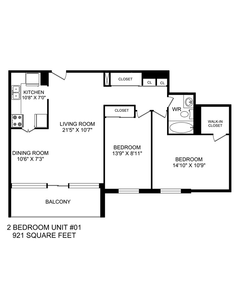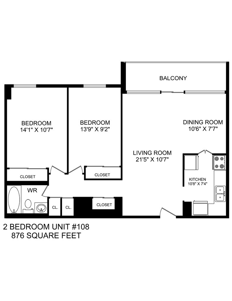 1 Bedroom - Floorplan 4 2 Bedrooms