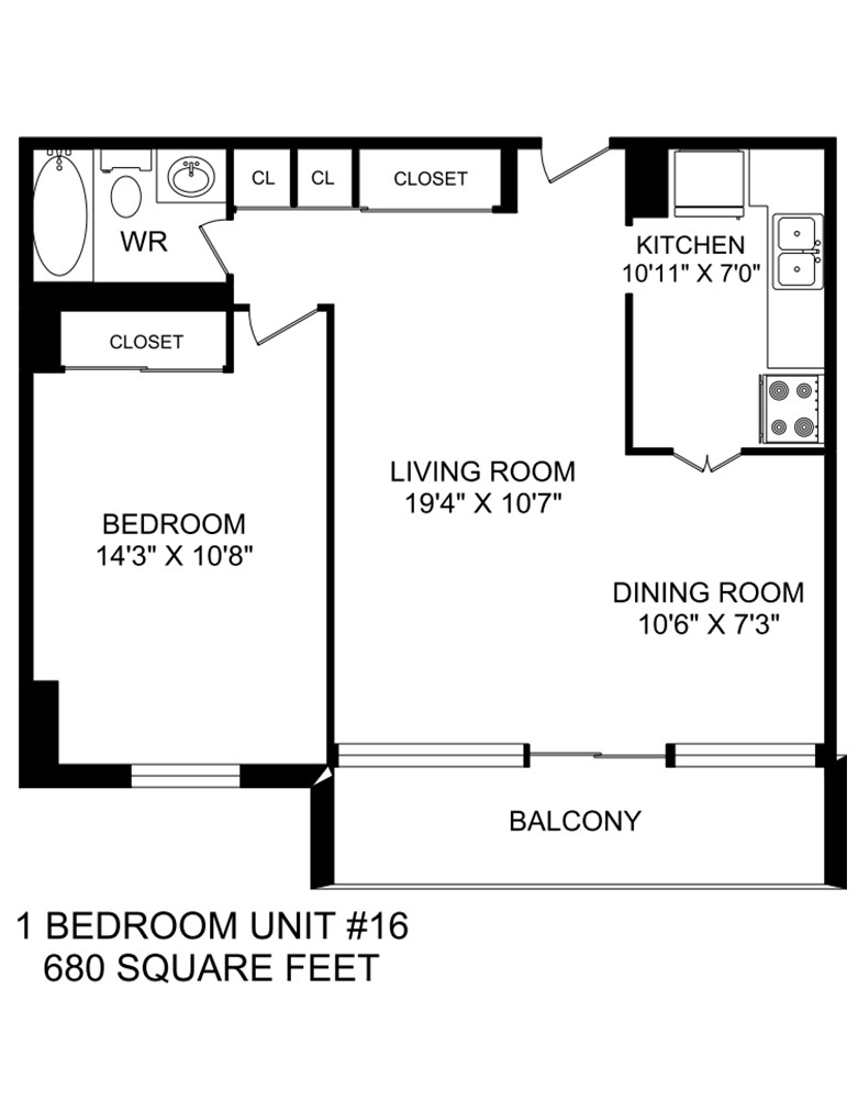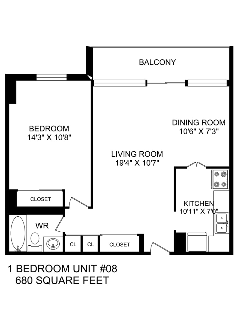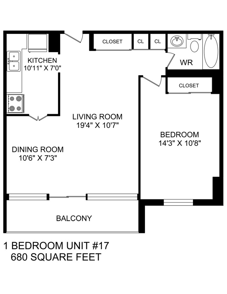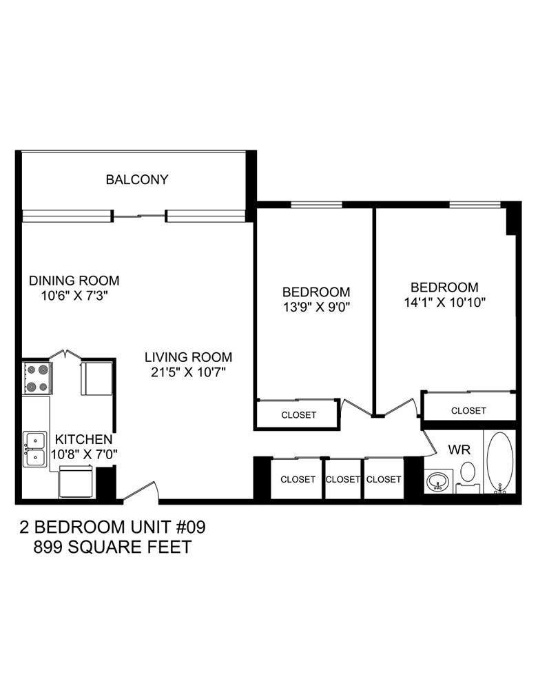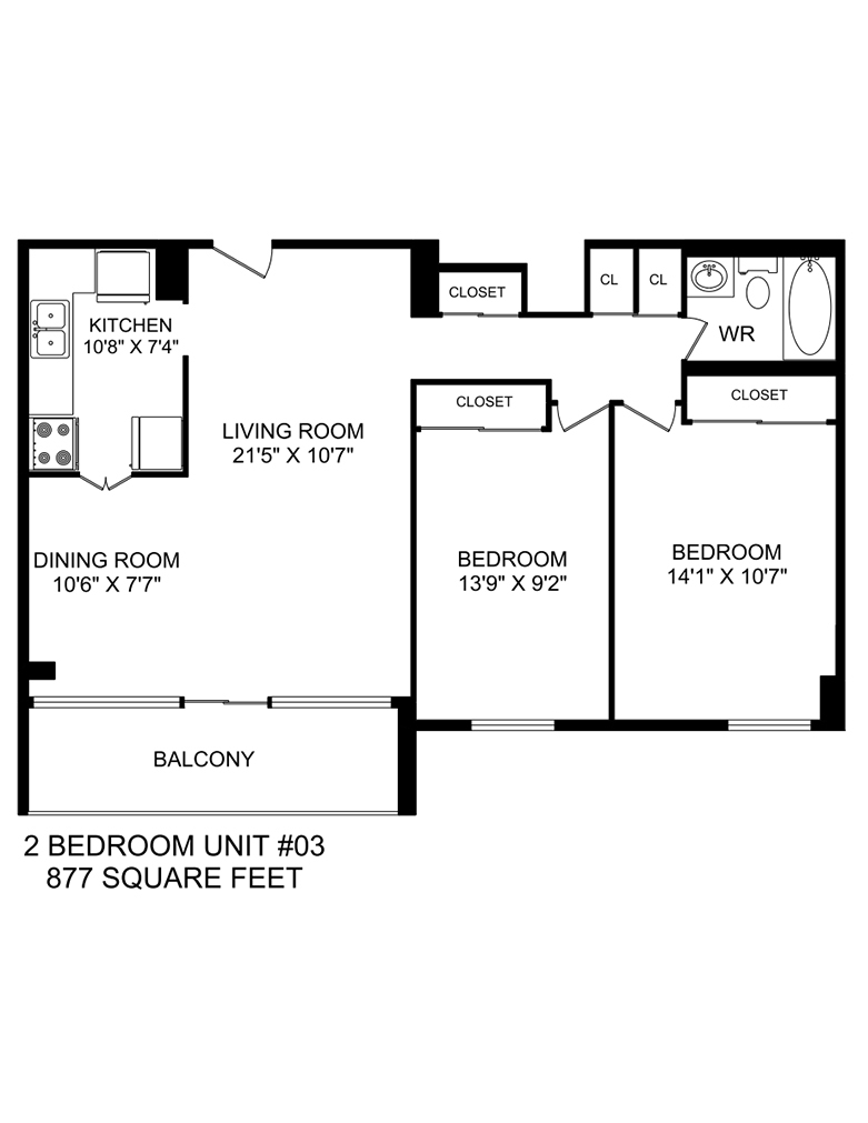 1 Bedroom - Floorplan 4 2 Bedrooms