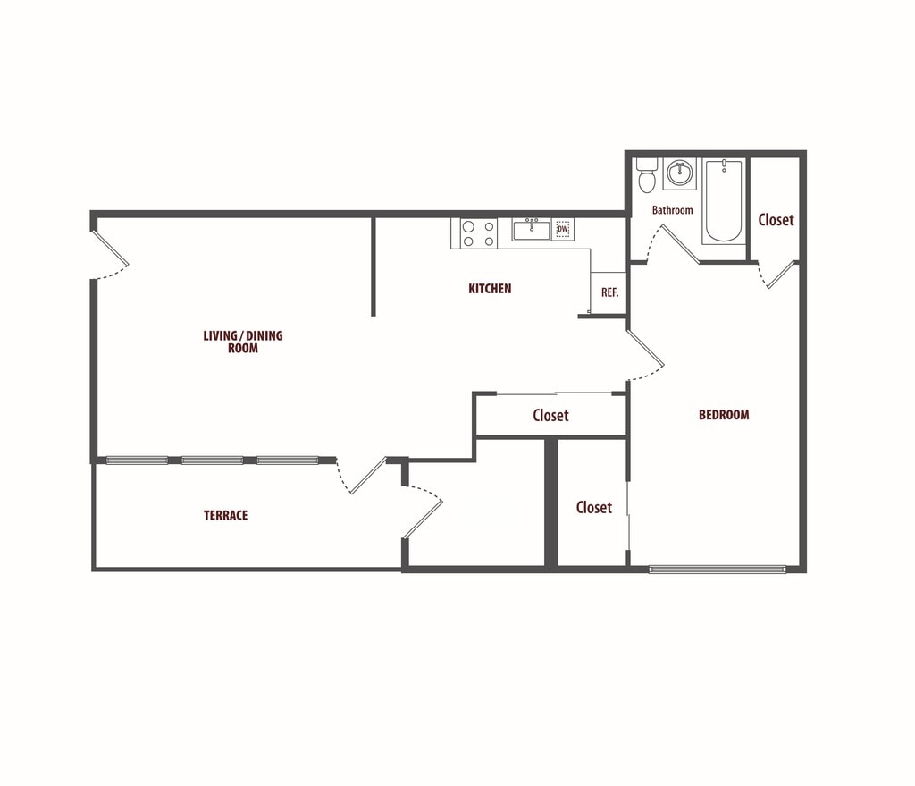 1 Bed, 1 Bath, 594 sq ftAvailable January 7, 2026Model Gallery
