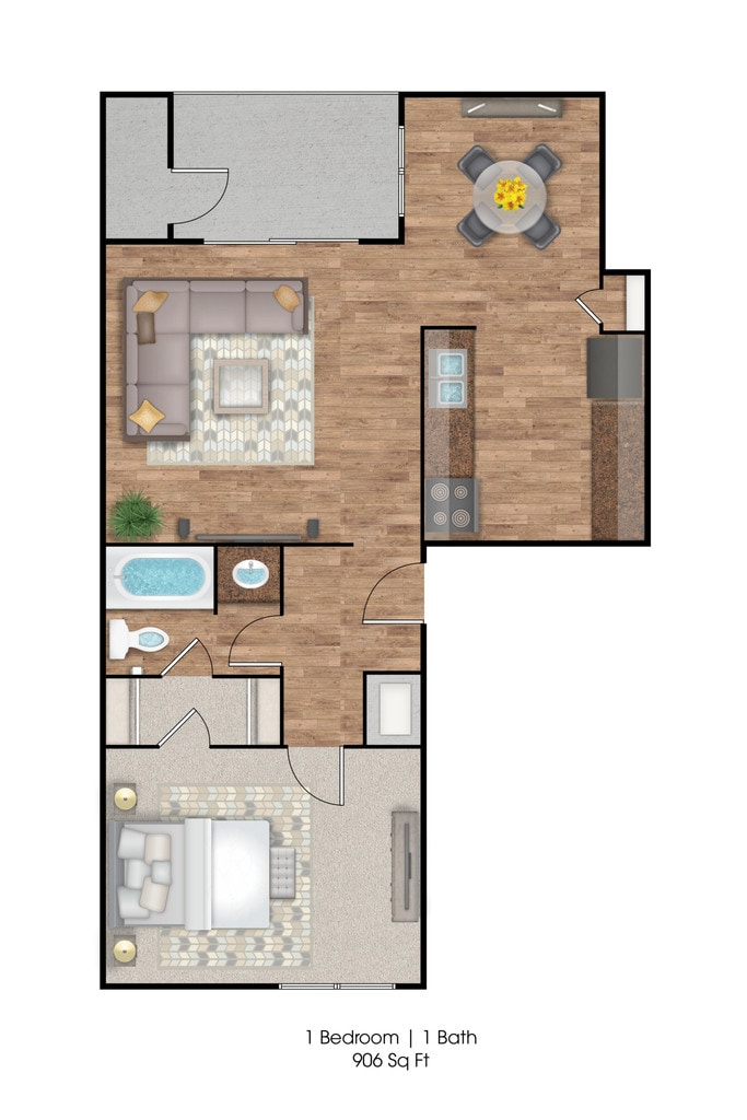 1 Bed, 1 Bath, 906 sq ftModel Gallery