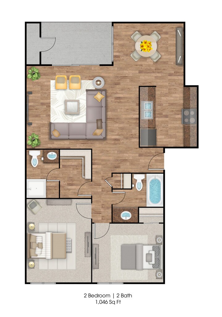 2 Beds, 2 Baths, 1046 sq ftAvailable NowModel Gallery