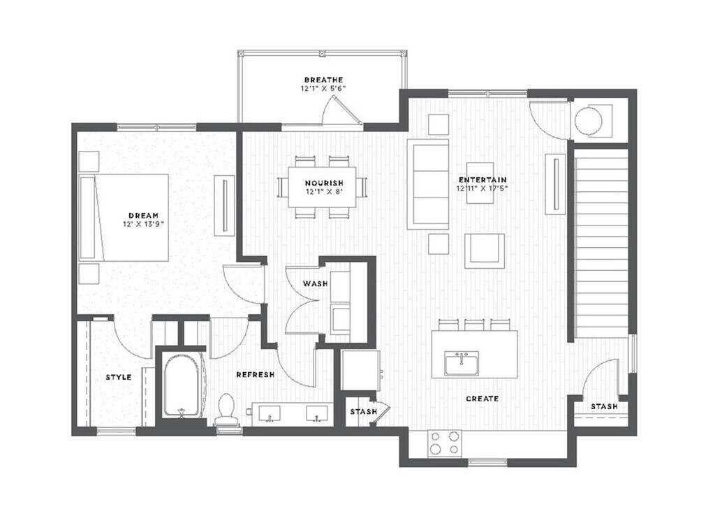 1 Bed, 1 Bath, 725 sq ftAvailable NowModel Gallery