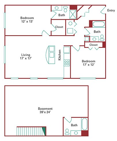 *Phase Two* 2 Bedroom Townhome with Basement - Floorplan 1 Apartment Unit: 1100-103Apartment Model: *Phase Two* 2 Bedroom Townhome with Basement2 Bedroom, 3 Bath, 2288 sq ftAvailable Now2 Bedroom Garden Apartment