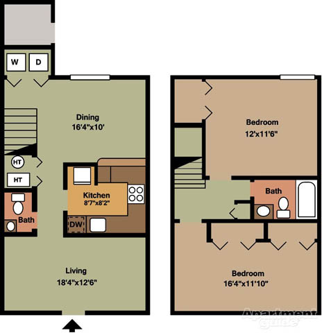 2 Bedroom Townhome - Floorplan 2 ![]()