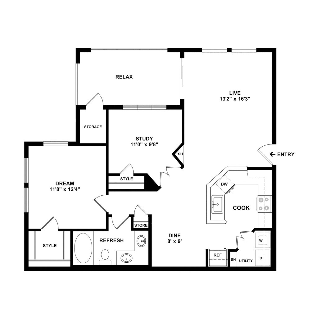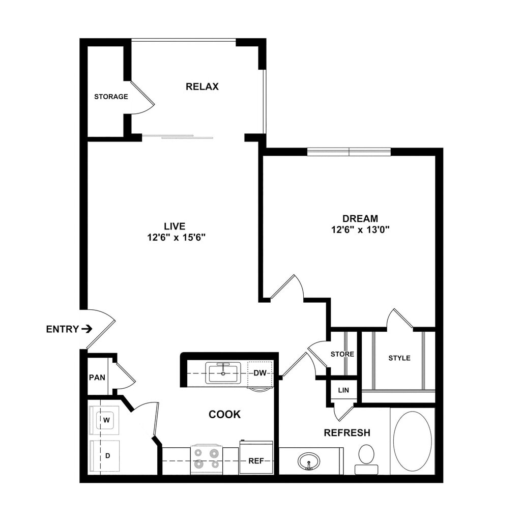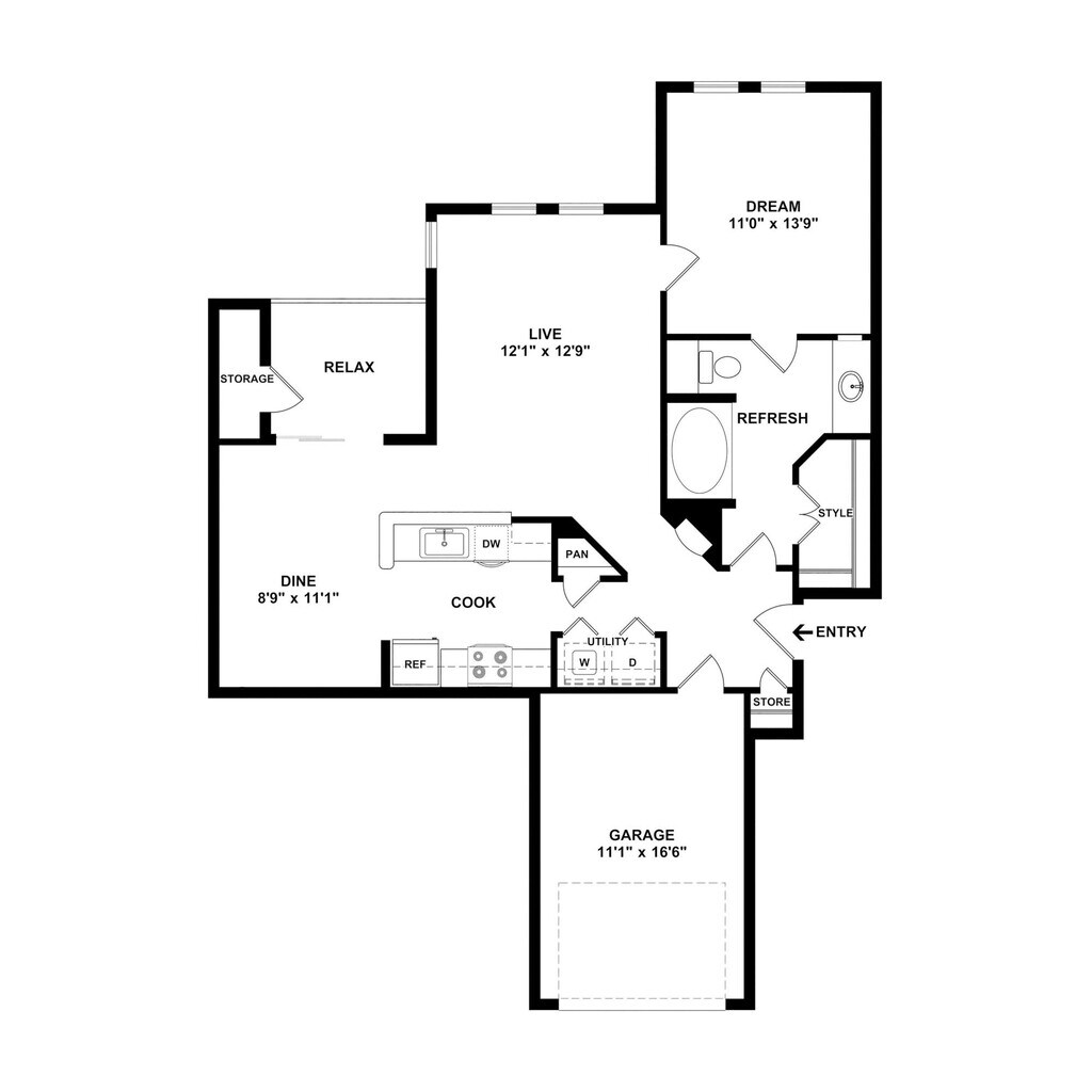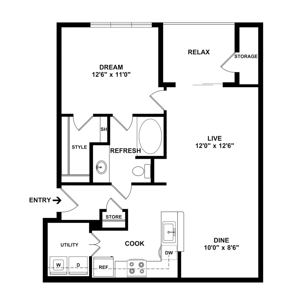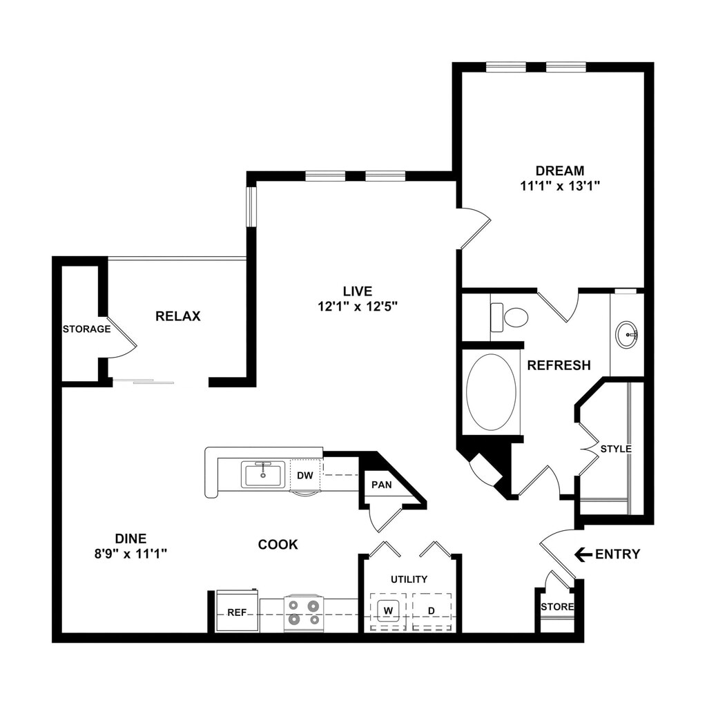 1 Bed, 1 Bath, 728 sq ftAvailable NowModel Gallery