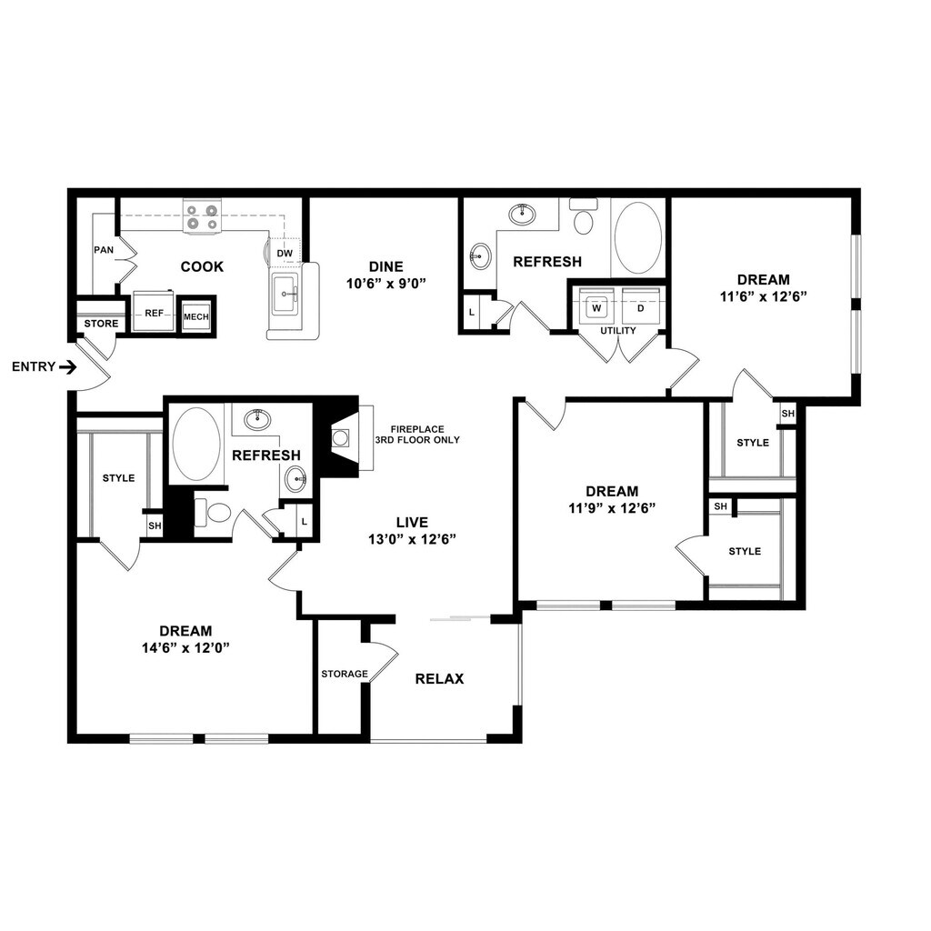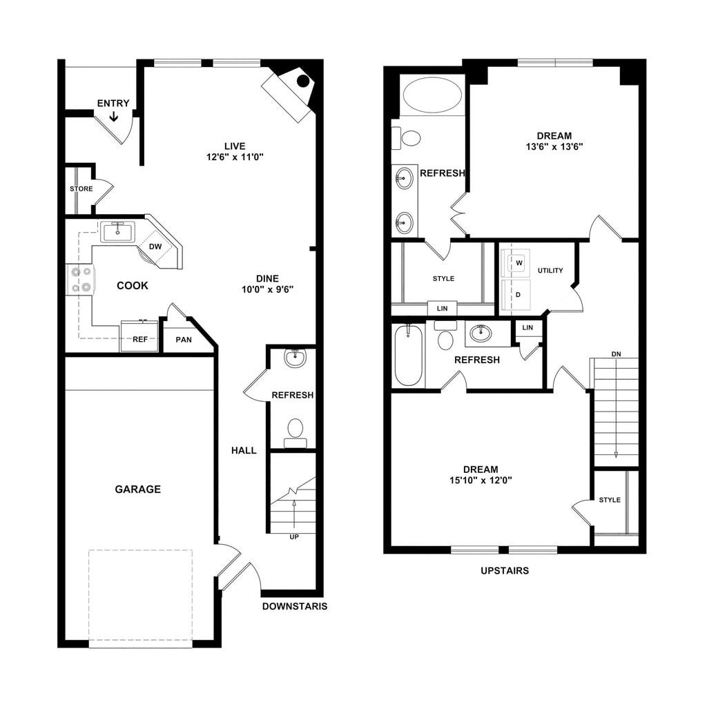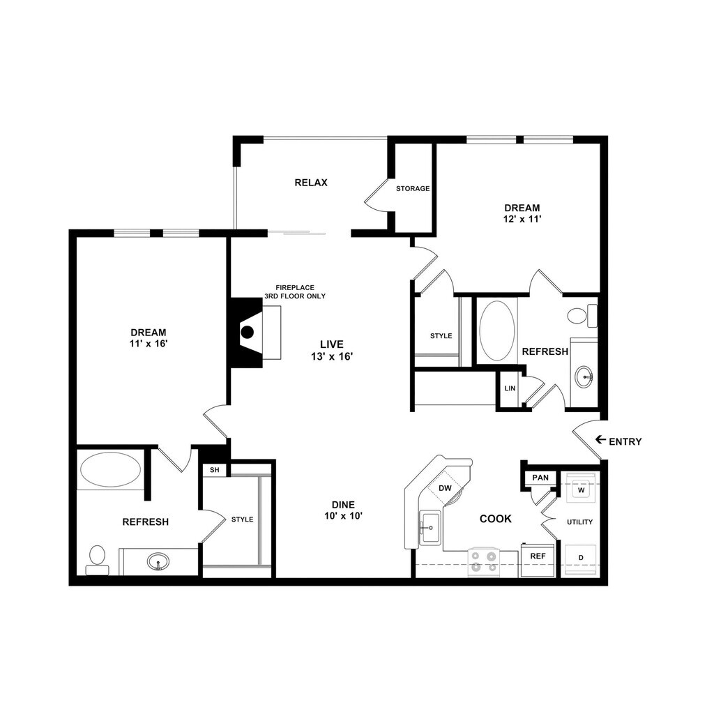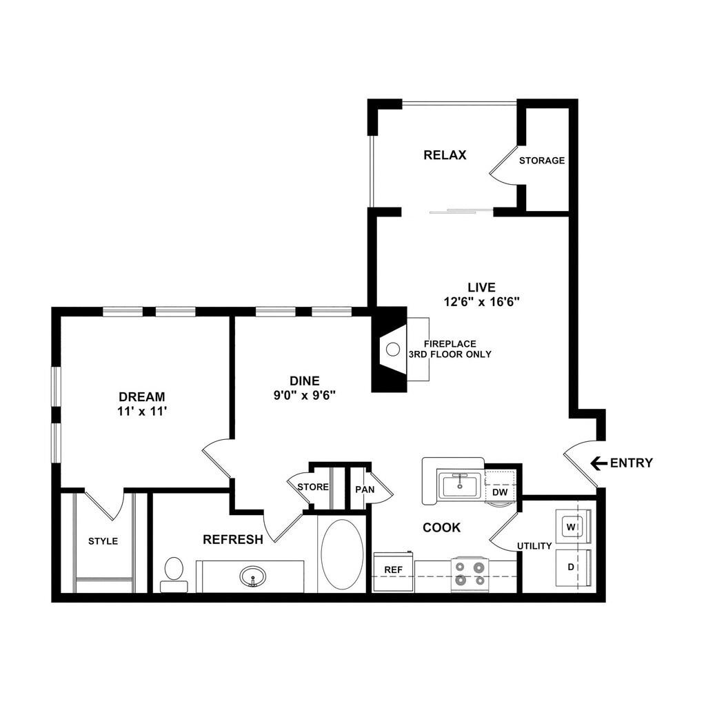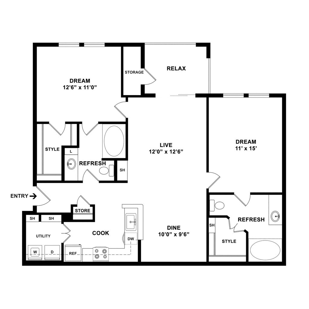 1 Bed, 1 Bath, 728 sq ftAvailable NowModel Gallery