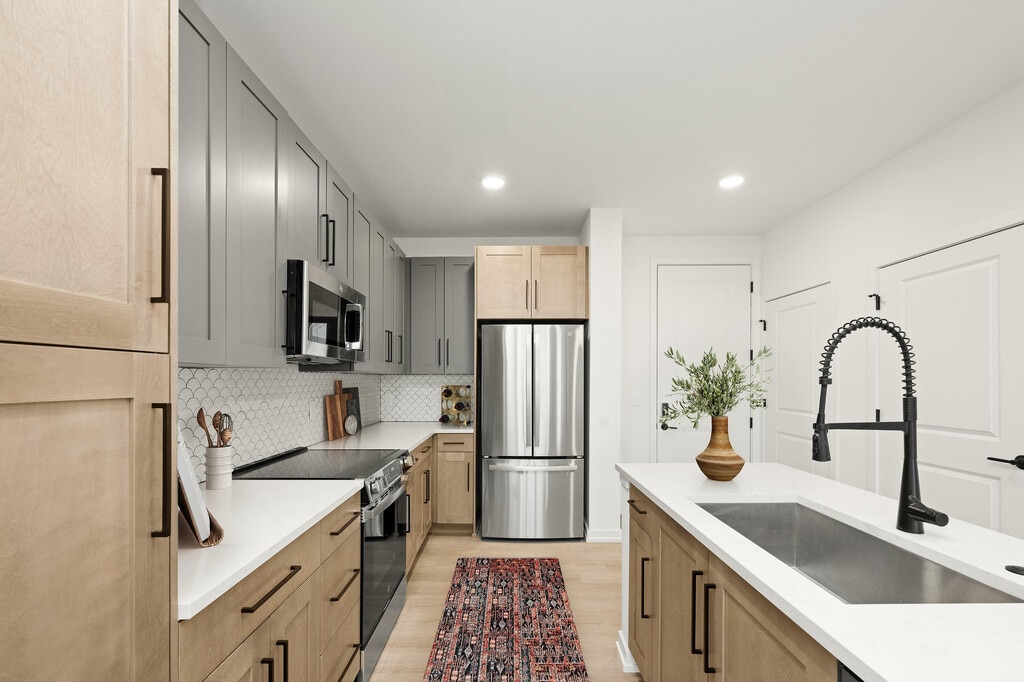 - Sleek Stainless-Steel Appliances and French Door Refrigerator