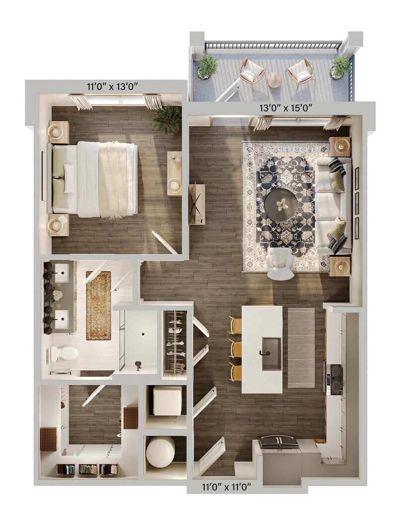 Studio, 1 Bath, 607 sq ftModel Gallery