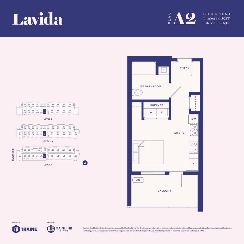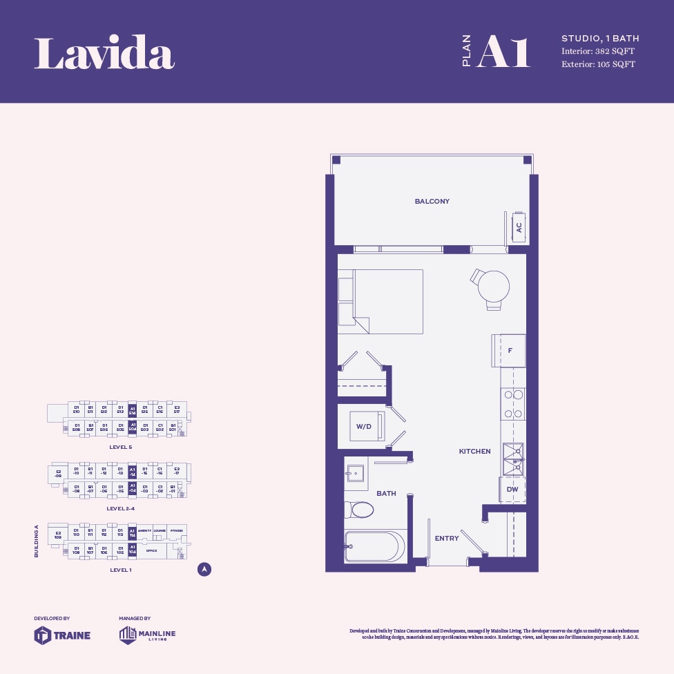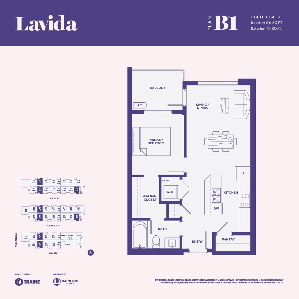 Lavida offers Studio to 2 Bedroom apartments starting from $1,575 and having 377–874 sq ft. Here is the current pricing and availability: