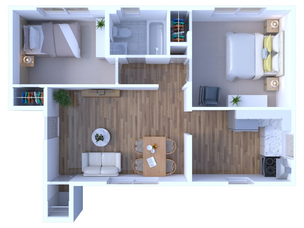 2 Beds, 1 Bath, 725 sq ftAvailable NowModel Gallery