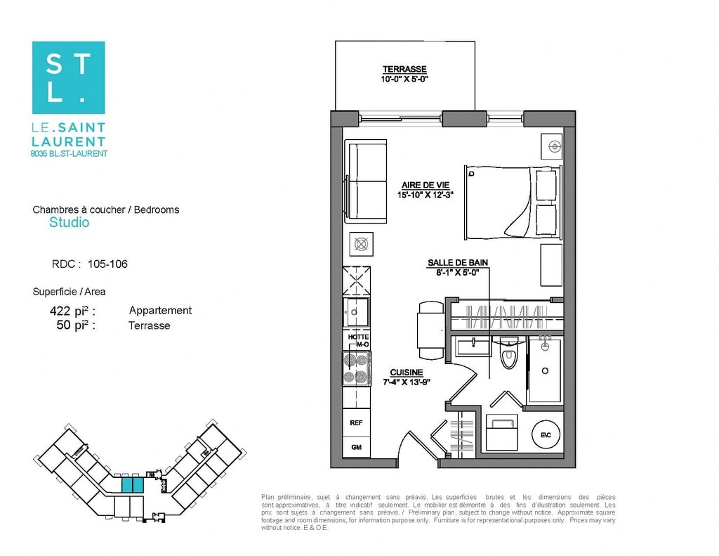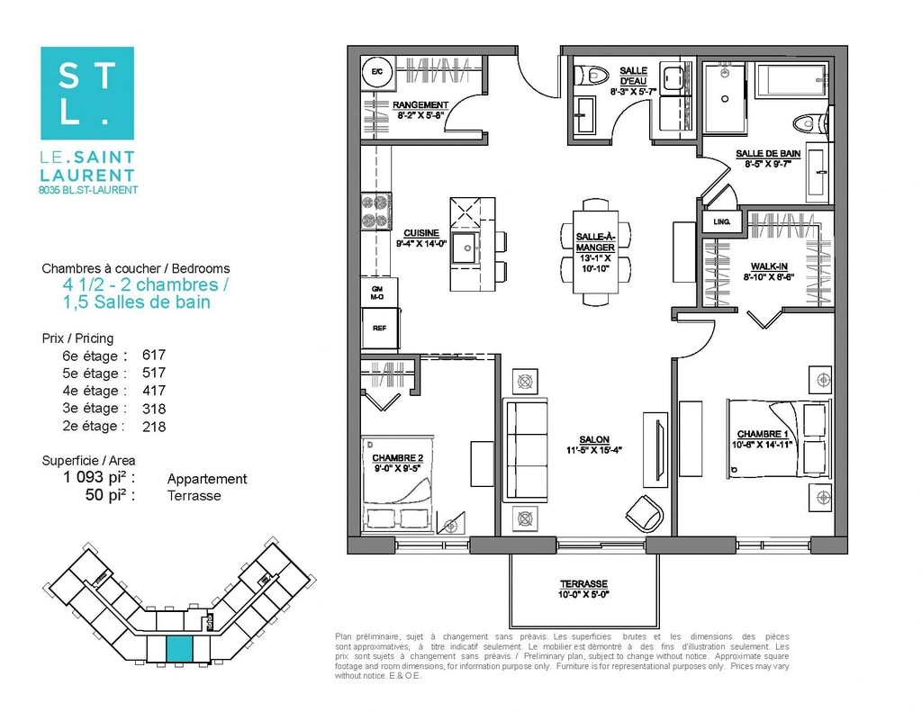 Le Saint-Laurent Apartments offers Studio to 2 Bedroom apartments starting from $1,215 and having 422–1,171 sq ft. Here is the current pricing and availability: