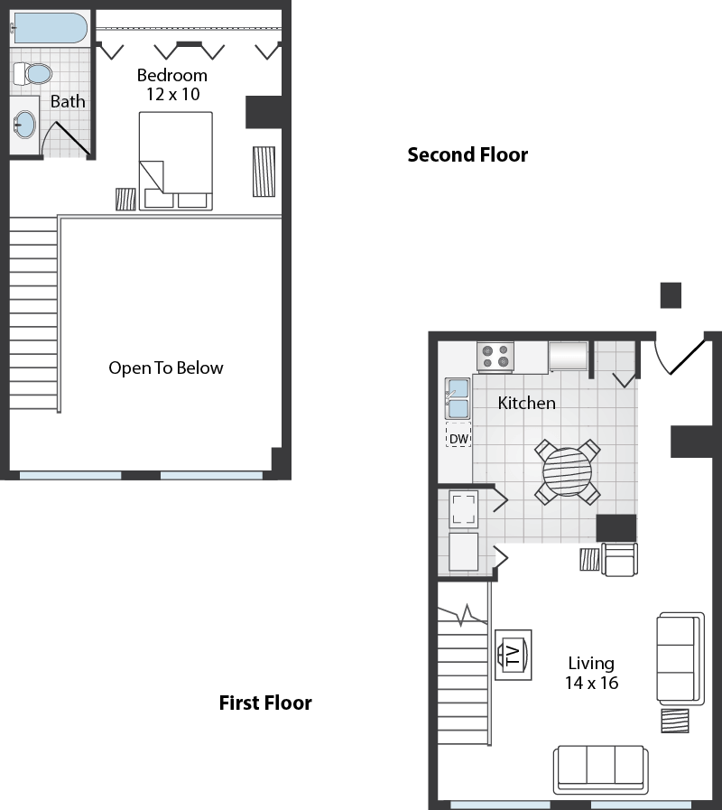 1 Bed, 1 Bath, 734 sq ftModel Gallery