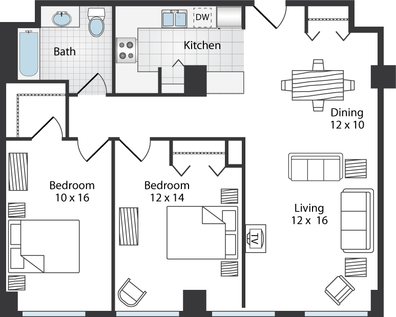 2 Beds, 1 Bath, 1047 sq ftModel Gallery