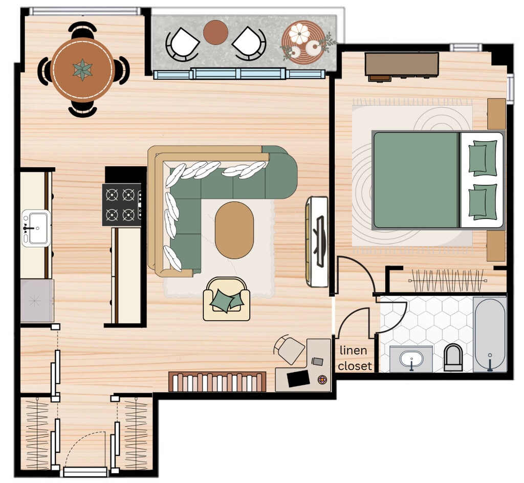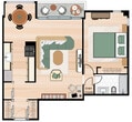 2 Beds, 1 Bath, 730 sq ftModel Gallery