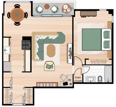 Apartment Unit: 9AApartment Model: Two Bedroom Furnished$2,7952 Bedroom, 1 Bath, 907 sq ftAvailable May 1, 2026Junior Two Bedroom
