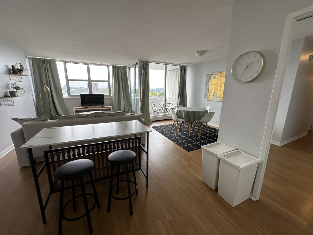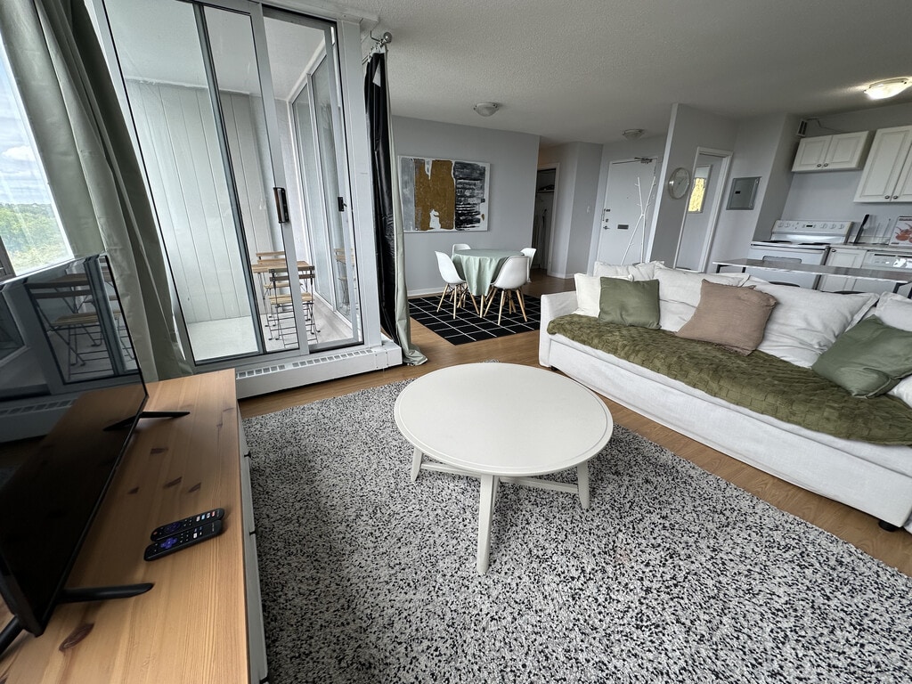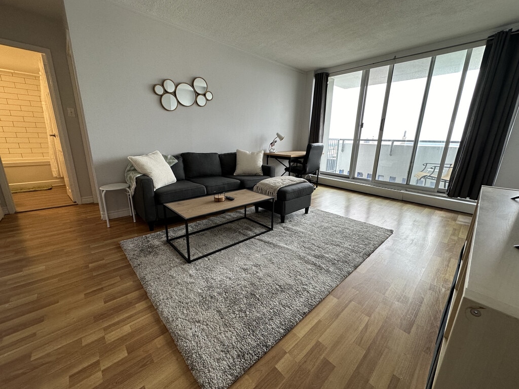 This is a fully furnished two bedroom apartment located just across the street from Dalhousie! Comes with all necessary furniture, fully stocked kitchen and Power/Electricity is included in the rent. 9th Floor apartment with great views of Halifax & the water.