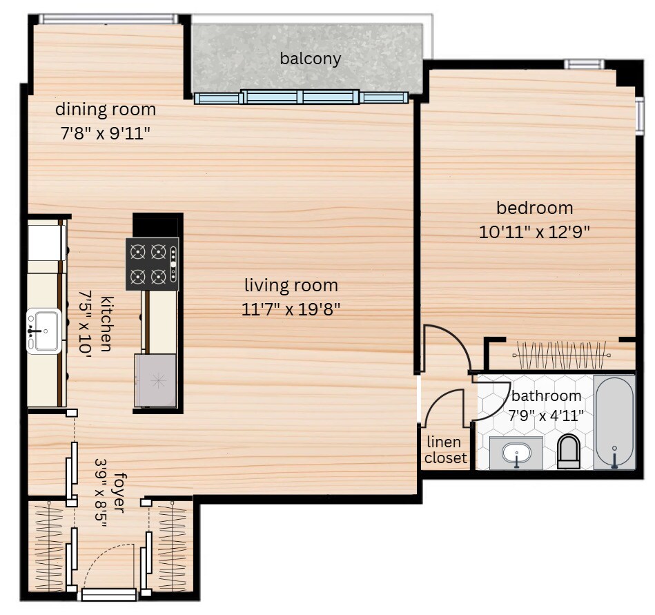 Apartment Unit: 10EApartment Model: Bachelor$1,695Studio, 1 Bath, 460 sq ftAvailable May 1, 2026FloorplansPhotos![]()