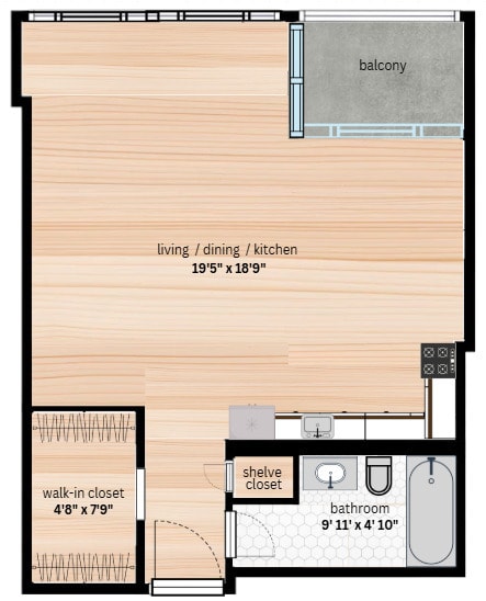 Apartment Unit: 10EApartment Model: Bachelor$1,875Studio, 1 Bath, 460 sq ftAvailable May 1, 2026FloorplansPhotos![]()