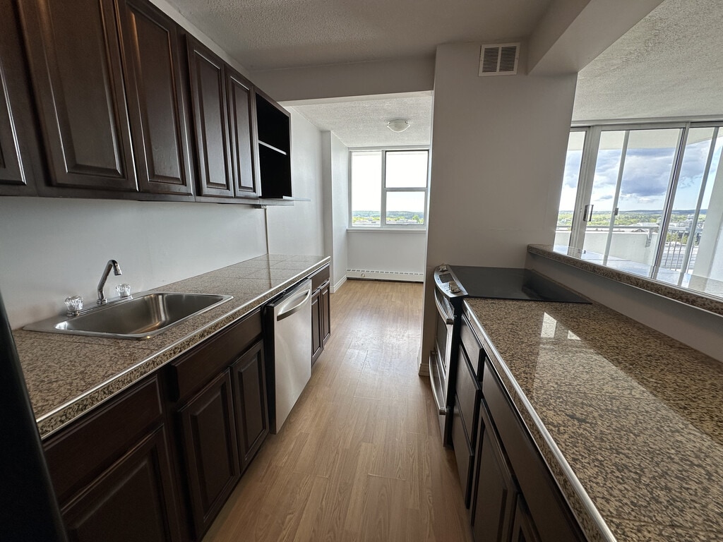 Unit 6E is a big, bright bachelor located just across the street from Dalhousie. The kitchen was recently renovated with new cabinets and countertops. It's a big space for a bachelor with multiple closets & floor to ceiling windows. To see the video tour, search 'Unit 6E Video Tour | Bachelor Apartment in Halifax | LeMarchant Towers | AR Webber Properties' on YT.