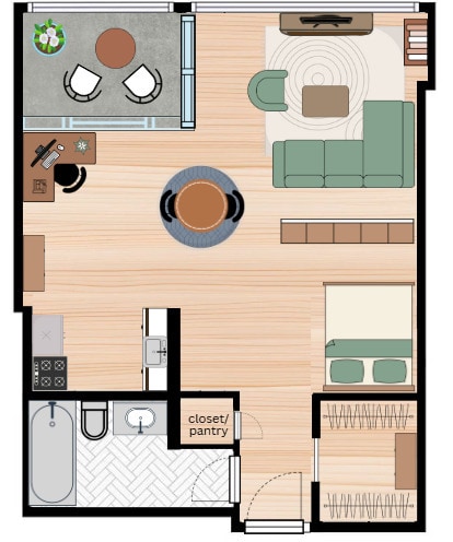 Unit: 2E - Floorplan 12 Apartment Unit: 6EApartment Model: Bachelor$1,720Studio, 1 Bath, 460 sq ftAvailable May 1, 2026FloorplansPhotos![]()