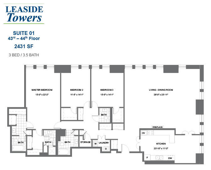 Price Availability Date Unit Sq Ft $4,799 Available Now Three Bedroom PH 2431 sq ft Model Amenities and Features