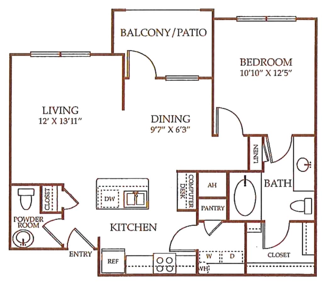 1 Bed, 1 Bath, 824-855 sq ftAvailable NowModel Gallery