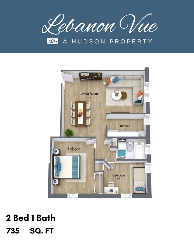 Lebanon Vue offers Studio to 3 Bedroom apartments starting from $1,050 and having 400–950 sq ft. Here is the current pricing and availability: