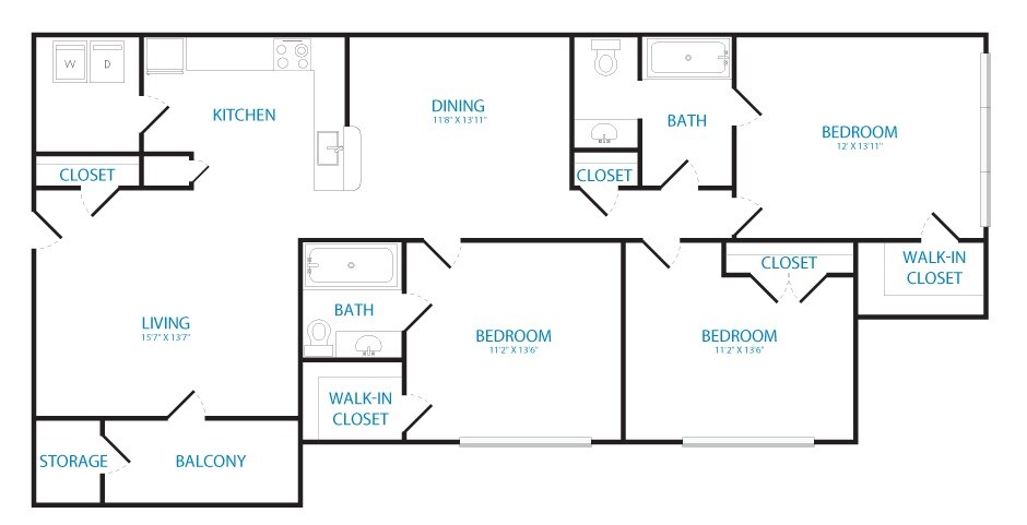 The Cumberland - Floorplan 1 Apartment Unit: 125-312Apartment Model: The Cumberland$1,6262 Bedroom, 2 Bath, 1225 sq ftAvailable January 27, 20263 Bedrooms