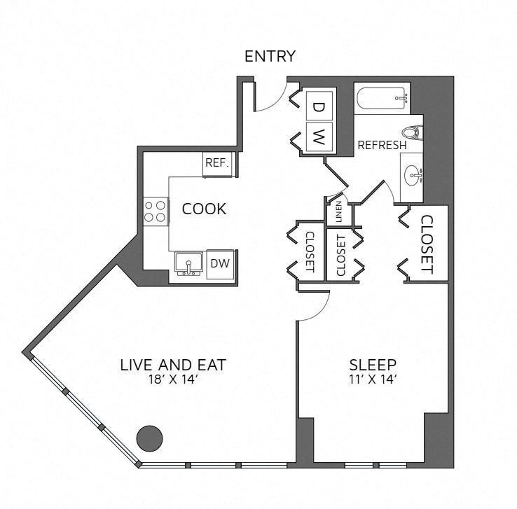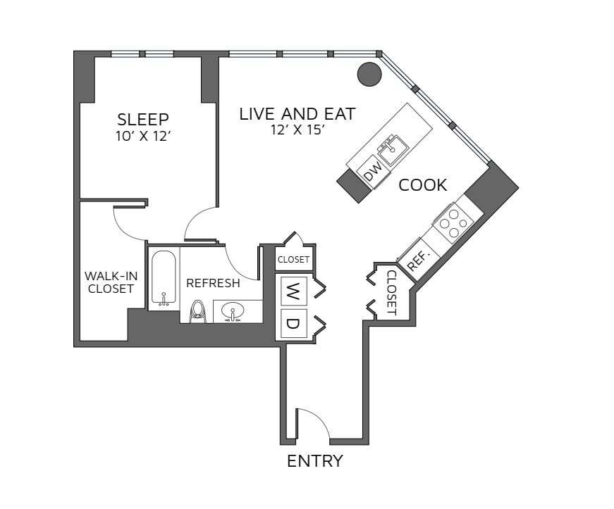 Apartment Model: 1 Bed 1 Bath-1a1-681From $2,7741 Bedroom, 1 Bath, 681 sq ftAvailable Now![]()